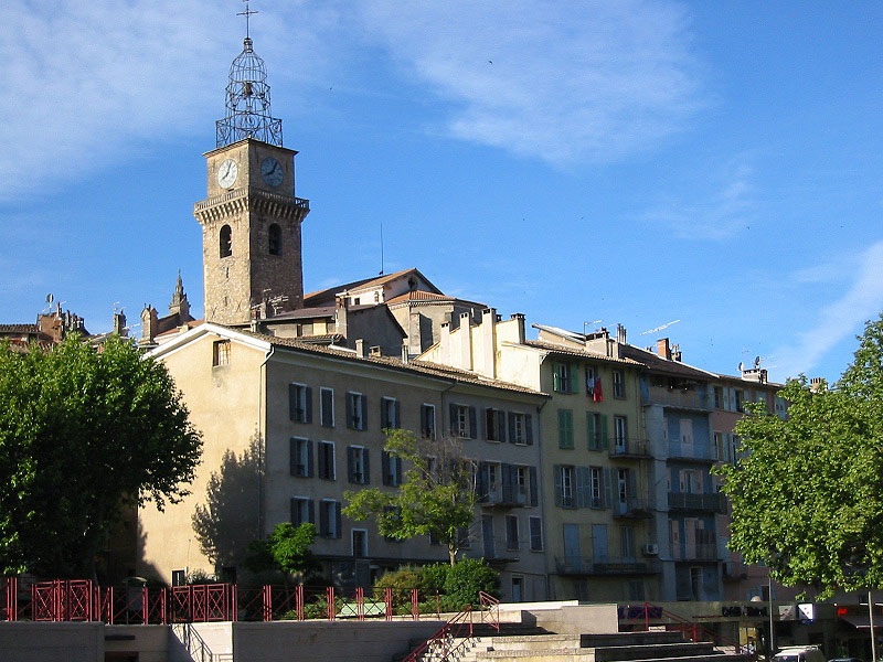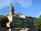 Catherdrale St Jerome. The framework bell tower is apparently common in this area. They have a stong wind in this part of France called the "Mistral". This kind of tower survives the wind better. This was taken the corner of Place General de Gaulle and Blvd Victor Hugo... but that address could be in probably 100 towns in France... |