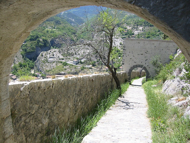 Up to the fort: The path switches back and forth a half dozen times up the face of the rock. The path is segmented by gates at regular intervals. I could not read the history, beyond that it was finished under the orders of Richelieu (Yes, I did those things) in the mid 1600's... but I can't imagine anyone taking the fortress without artillary. Entrevaux was one of a ring of towns on the then, French-Italian border and was fortified to keep both the Italians and later the Austrians out of France.