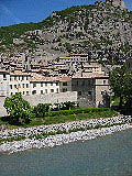 Entrevaux is a "classic" by Dungeon and Dragons standards. It has a fortress high on the "hill". Two guard houses and a river below it. |