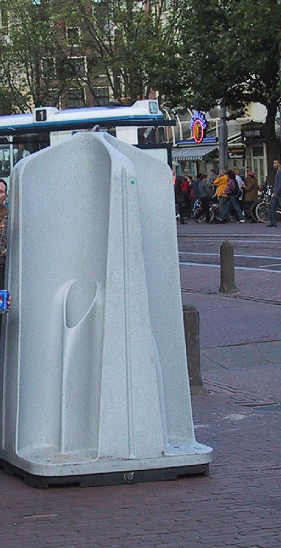 ![]() Most large cities have this problem, but the Free Visitors Guide describes it this way "Urinating in public: Dirty habit, always committed by men. If you are caught, the fine will be 45.38 Euros, to be paid immediately." Very few places are willing to tell you about their facilities without you being a customer. The Central Station has excellent bathrooms (for .50 Euro) at the platform level, and as the rule goes, always avail yourself of a train station bathroom as you just don't know what's out there. The Burger Kings also advertised their bathrooms. Hopefully one of the last options (for men) are the public urinals (right). The older ones are enclosed a bit, the newer ones are... well... an act of self control. If you can't go with another guy in the bathroom I have no idea how you handle this one... I didn't look at these things twice until someone walked up and started to do his business. I guess it solves a problem, but I wonder how this would go over in NYC. |