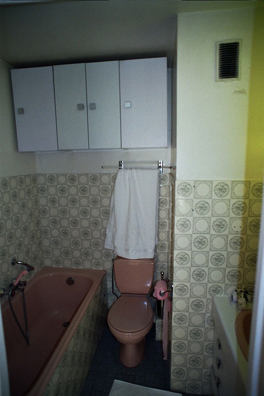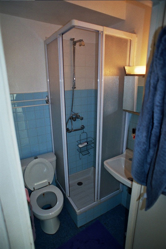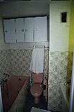Guest bath. Tiny, but it works as long as you don't drop anything. |