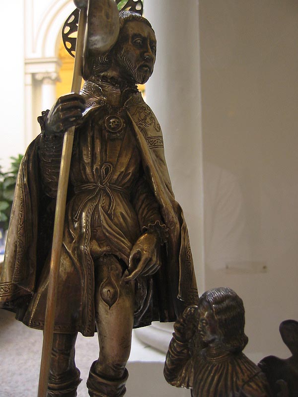 This is St. Roch, for whom the local large hospital is named. Silver, apparently from the sacrity of the hospital. |