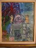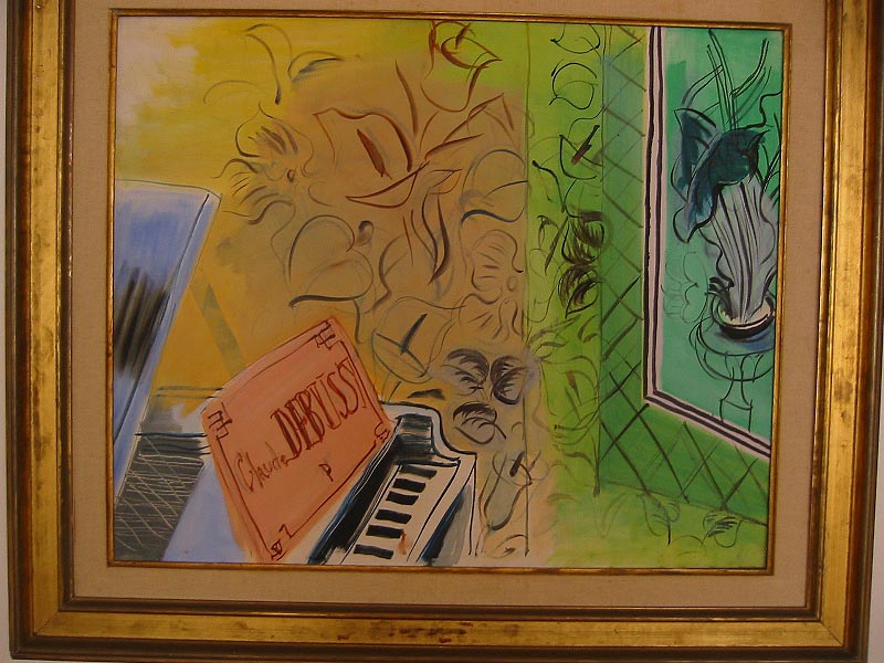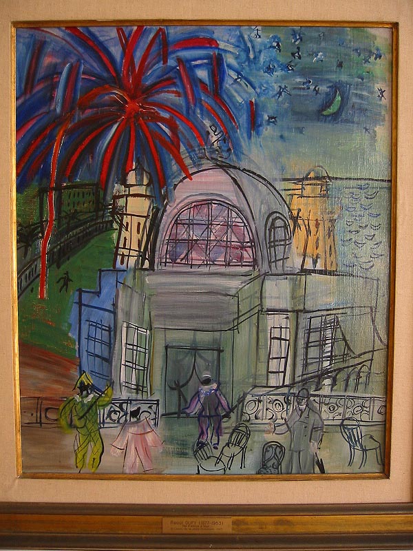 This is the work of a local impresisonist Raoul Dufy. It is a scene of Nice... the used to be a large restaurant in the bay before the Germans blew it up. |