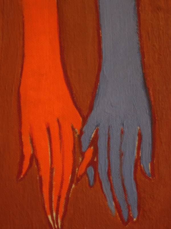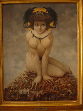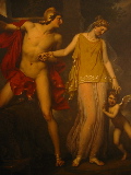 This painting was in a very dark spot on the staircase. I wish it had turned out better, but the hands were very well done...and cupid has a great look on his face. |