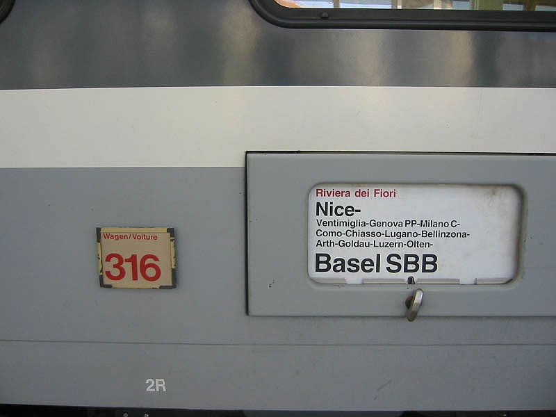 So... I booked tickets a few days before from Nice to Genoa. Total cost round trip was about $45. The Italian train system website would bomb out when I went to purchase the tickets, so I hoped I could catch one of many opportunities when I got to Genoa... Anyway... so this is to show you that each car has a number, and hopefully a destination (or route) in addition to a train number. |