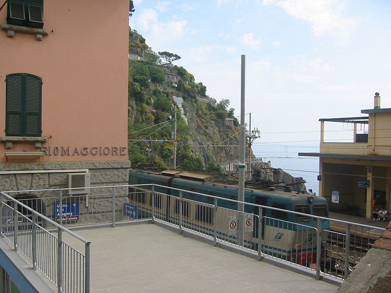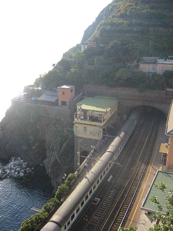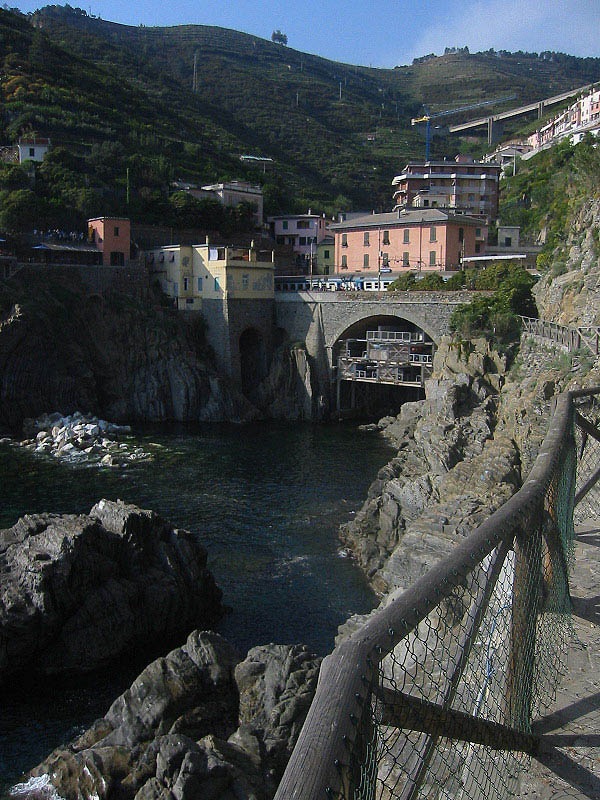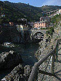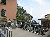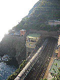 I chose to ride to the last town in the chain and walk my way back. Riomaggiore doesn't look like much from the station, but you must be amazed there is a station here at all! (see later pictures) To get to the town you either walk part way through the train tunnel... swing all the way back up and around a hill, or follow the coastal path around a point to (let's try this again)...