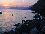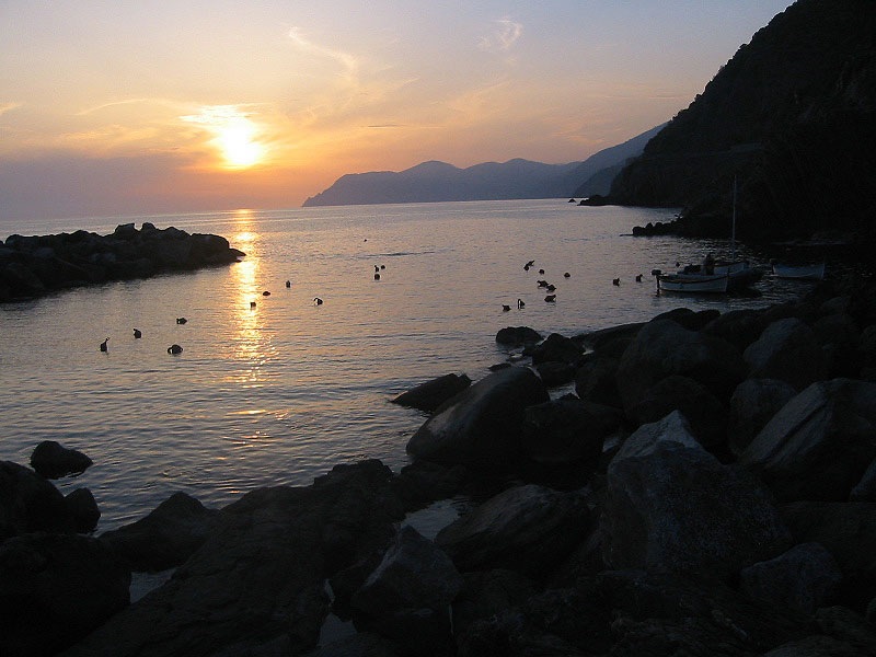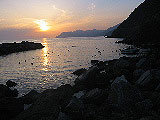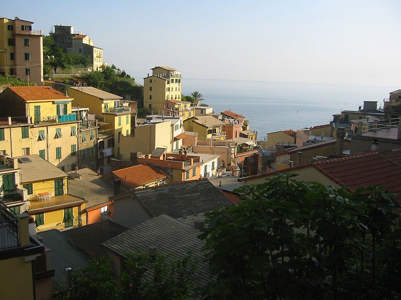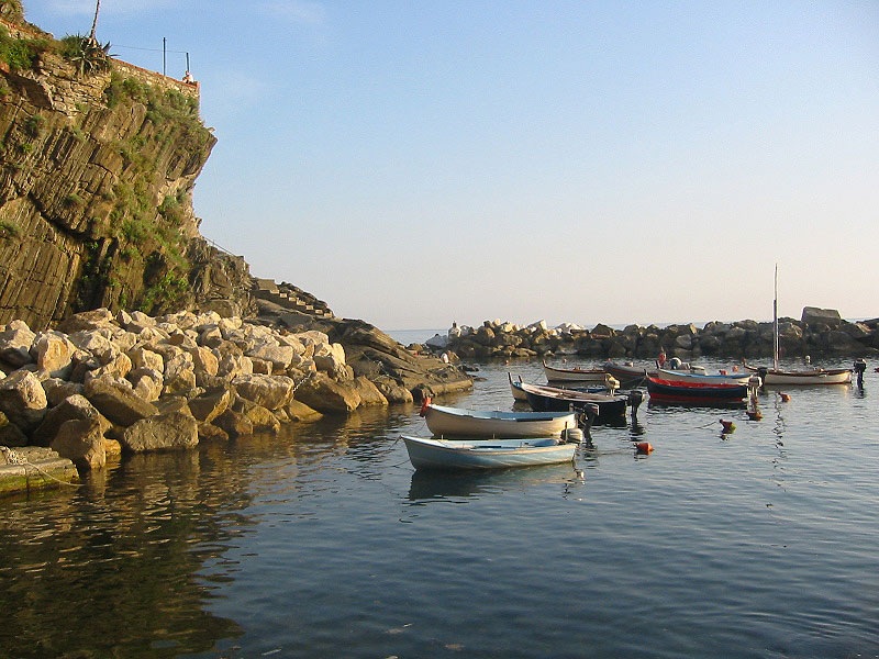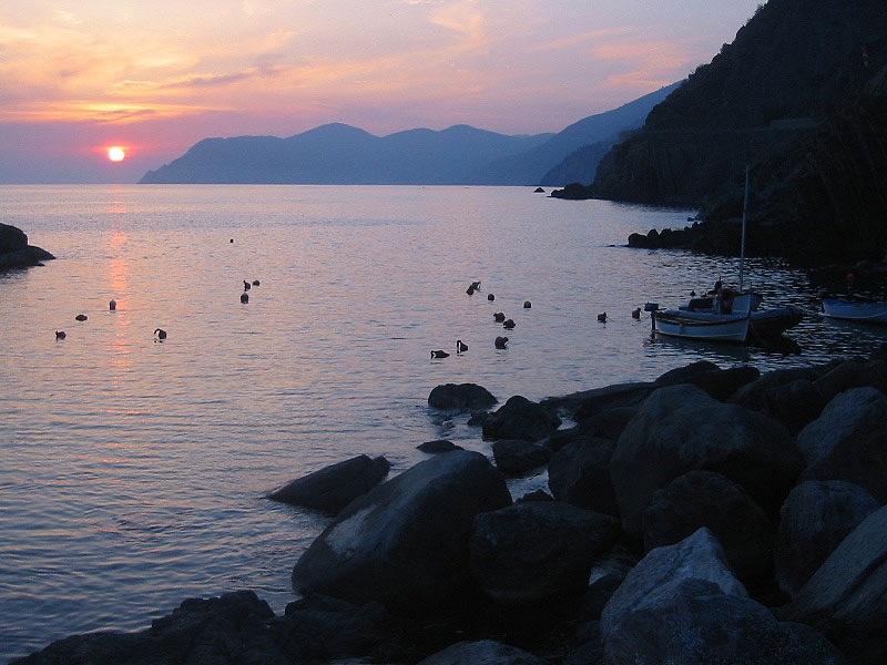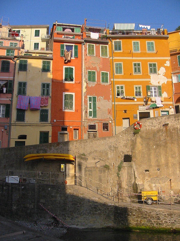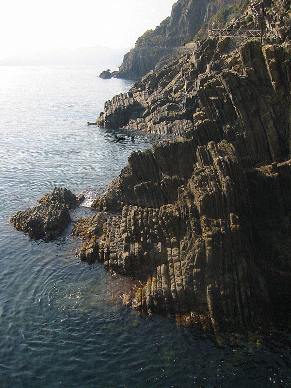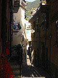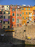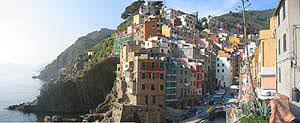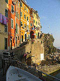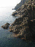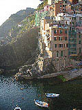 The Cinque Terra is a group of five small towns that hug the hillside and the coast just south of Genoa Italy. Historically isolated, it is now very easy to reach them via train. Once there you can use the train to hop between towns, or hike (like I did) along rocky coastline terraces. You can also buy a 1,3 or 5 day pass (for 5.50 Euro a day) to the park which entitles you to unlimited train, path, bus and facilities use. The path only pass is 3 Euro a day. The waters off these towns have been designated as a marine preserve... an aspect I did not get to explore (this time). Rick Steves in TV/books series "Europe Through the Backdoor" has made these towns incresingly poular, but they are still relativley calm compared to the rest of the Riviera and I found that most of the tourists cleared out after 5pm, at least at this time of year.