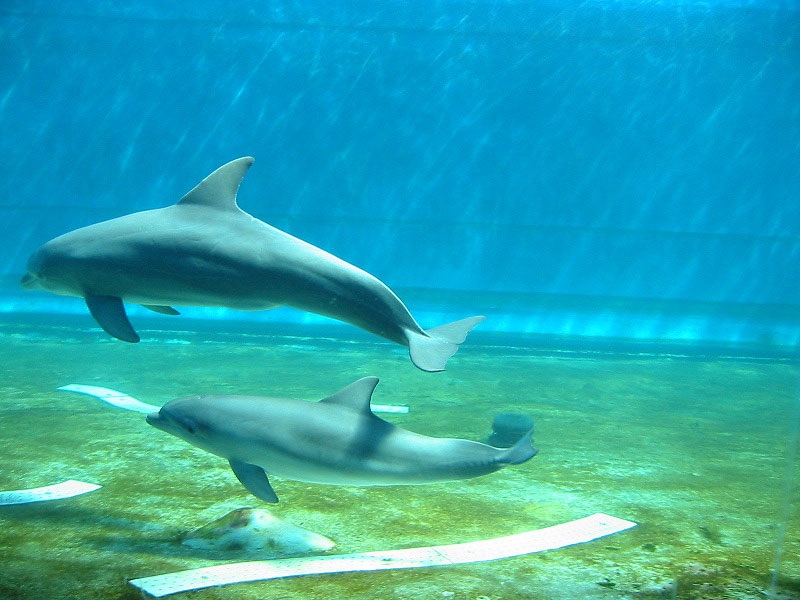 One baby Bottlenose Dolphin and the mama in a nice large tank. | ![]() |
