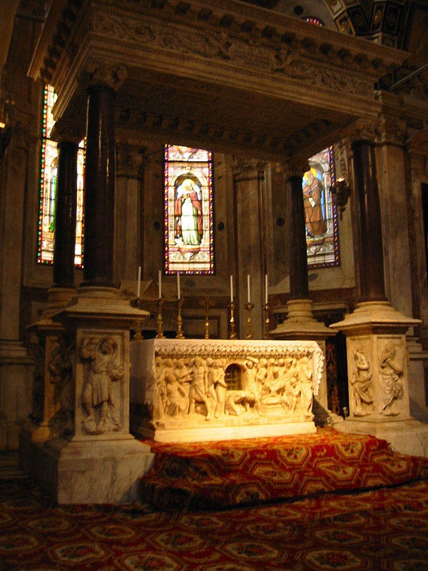 ...leading to Cattedrale di San Lorenzo, first constructed in the 10th century. The fresco in the nave is 14th century. | ![]() |