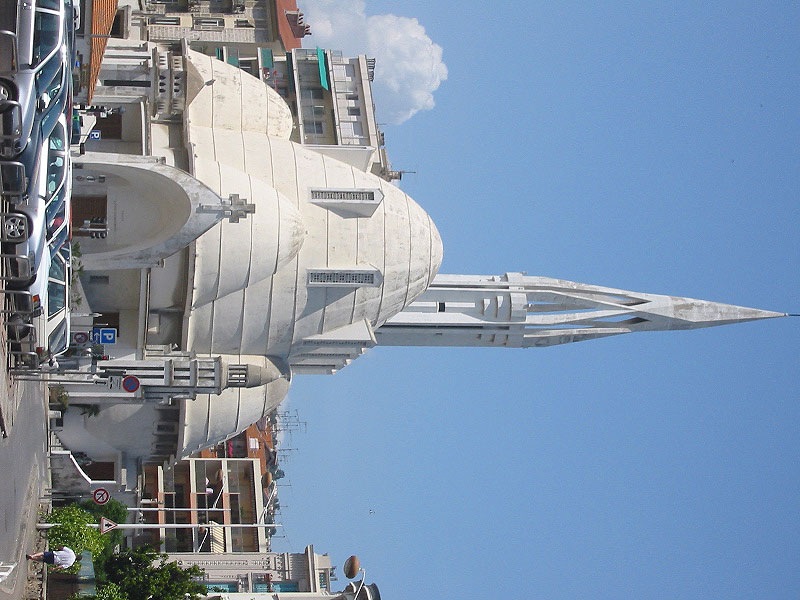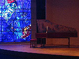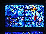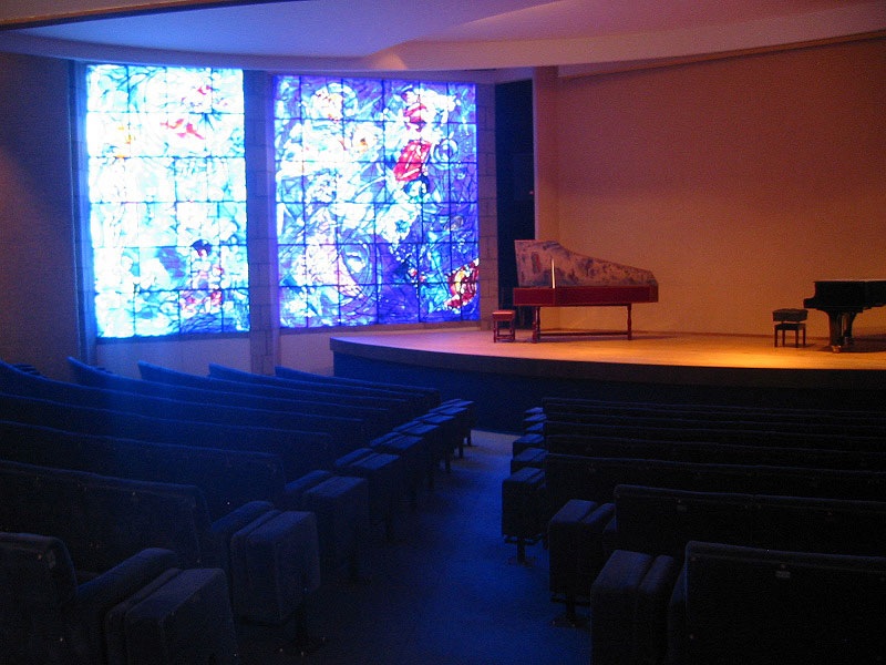 The auditorium contains stained glass representing the creation of the world. | ![]() |