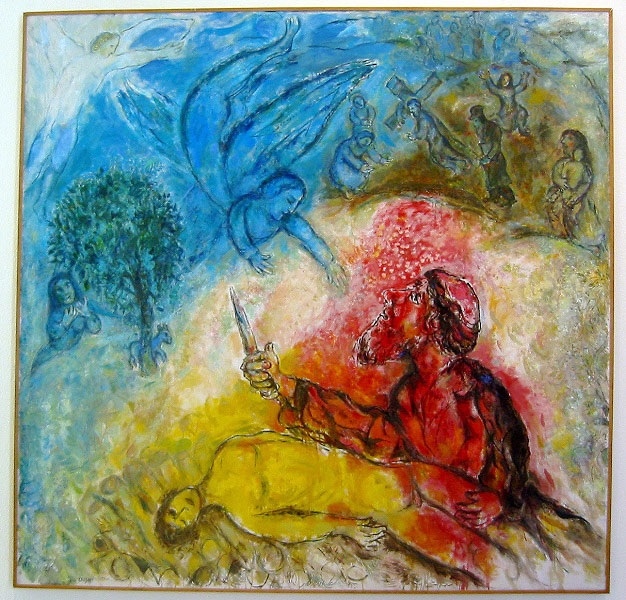 The "Sacrifice" of Issac by Abraham. Compare this treatment of the scene to ... say Carravagio?