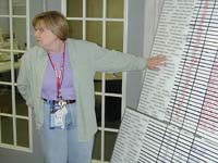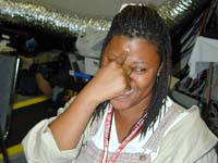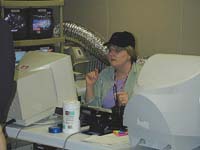 Beth is so absorbed in her work she doesn't see the giant silver boa constrictor sneaking up behind her... |
