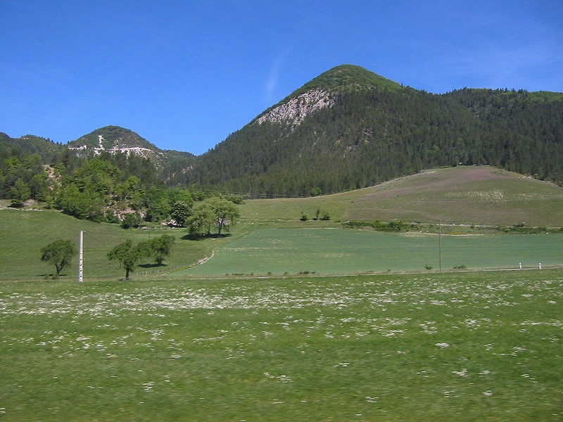 On the train from Dinge I had the car to myself.... the best shots (and clearest glass) were straight out the back of the train... this area is known for it's lavendar production...but that doesn't bloom until August...and I have no idea what it looks like when it's not in bloom... |