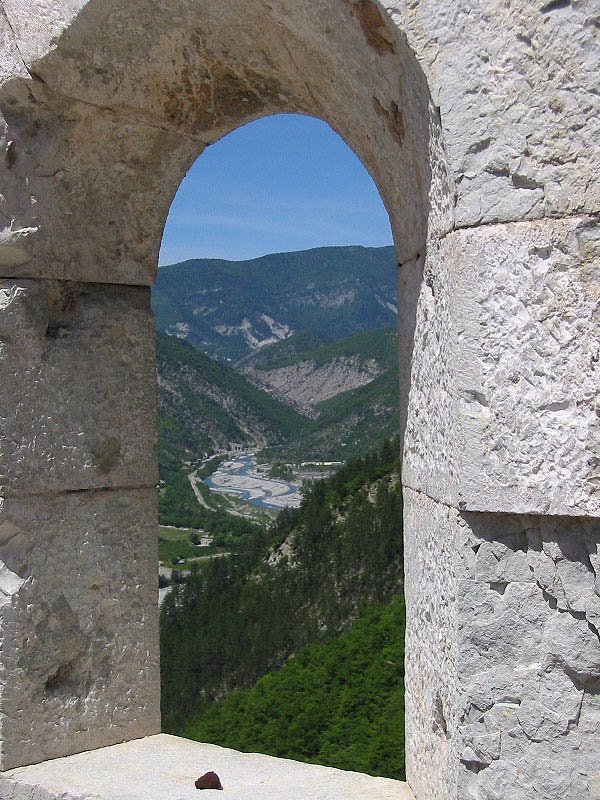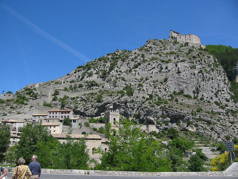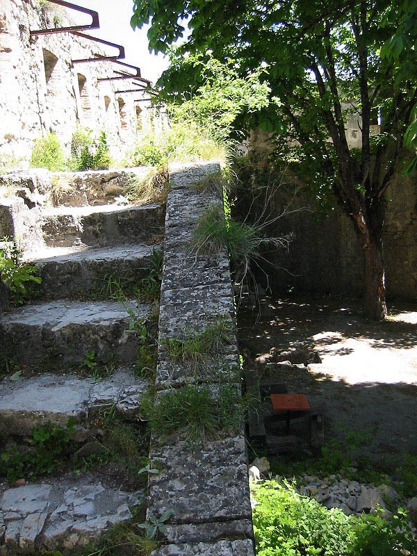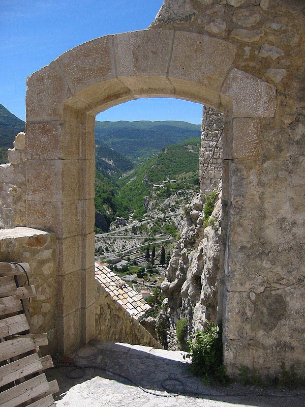 Up to the fort: The path switches back and forth a half dozen times up the face of the rock. The path is segmented by gates at regular intervals. I could not read the history, beyond that it was finished under the orders of Richelieu (Yes, I did those things) in the mid 1600's... but I can't imagine anyone taking the fortress without artillary. Entrevaux was one of a ring of towns on the then, French-Italian border and was fortified to keep both the Italians and later the Austrians out of France.