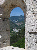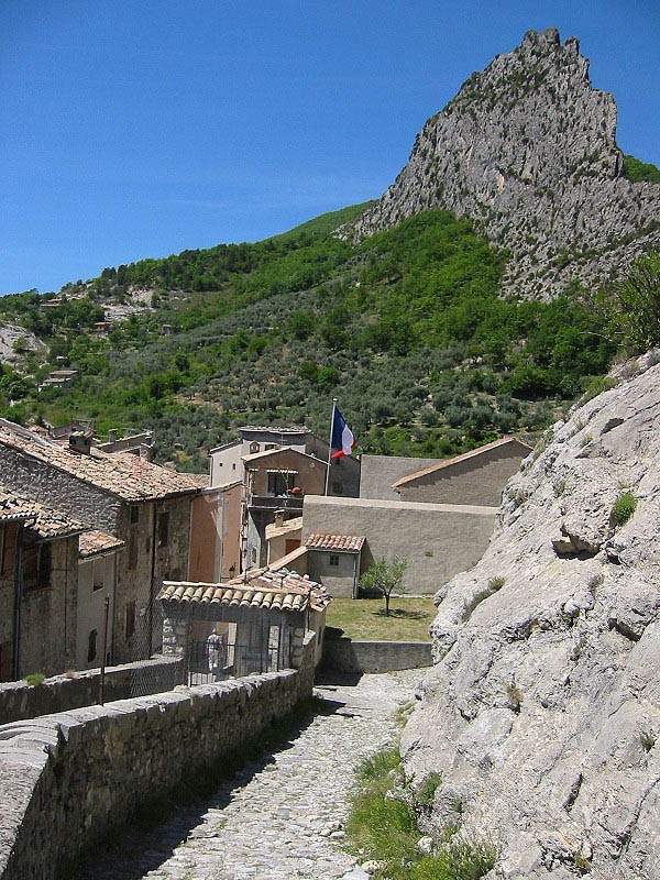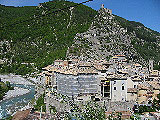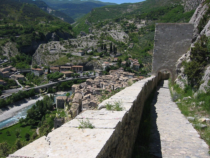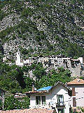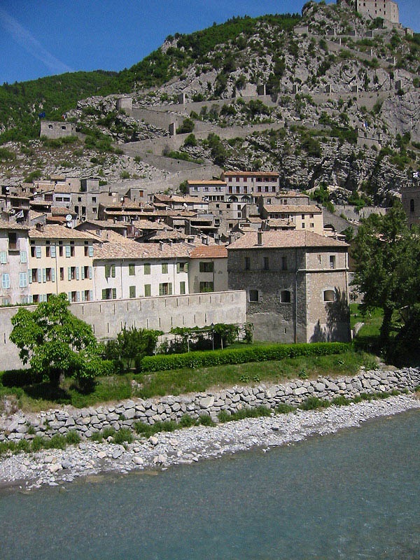 Entrevaux is a "classic" by Dungeon and Dragons standards. It has a fortress high on the "hill". Two guard houses and a river below it. |