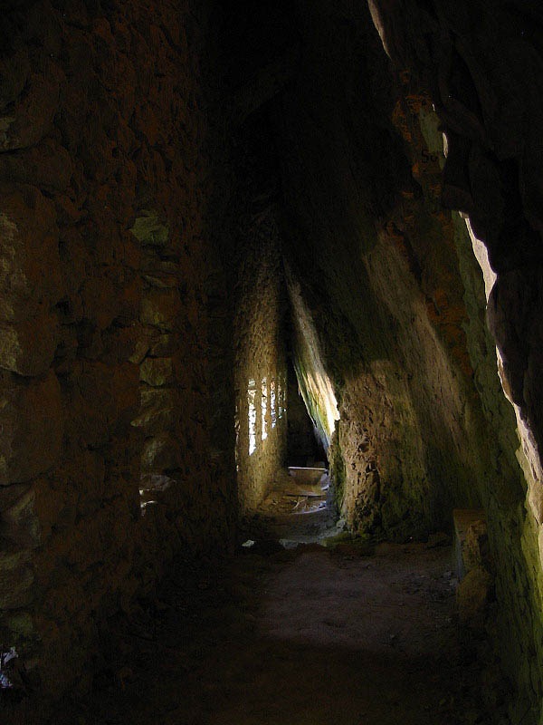 The middle picture shows a tunnel leading to a row of arrow slits... the artifically enclosed an area below the tower...from the outside it just looked like rock face. |