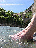 So, I decided that my sore feet should take a dip in the Var... and it helped, mainly because they numbed up in the cold water... this is real photographic artistry here... |