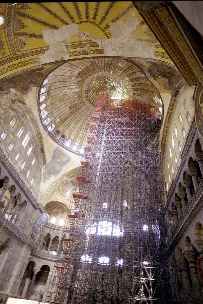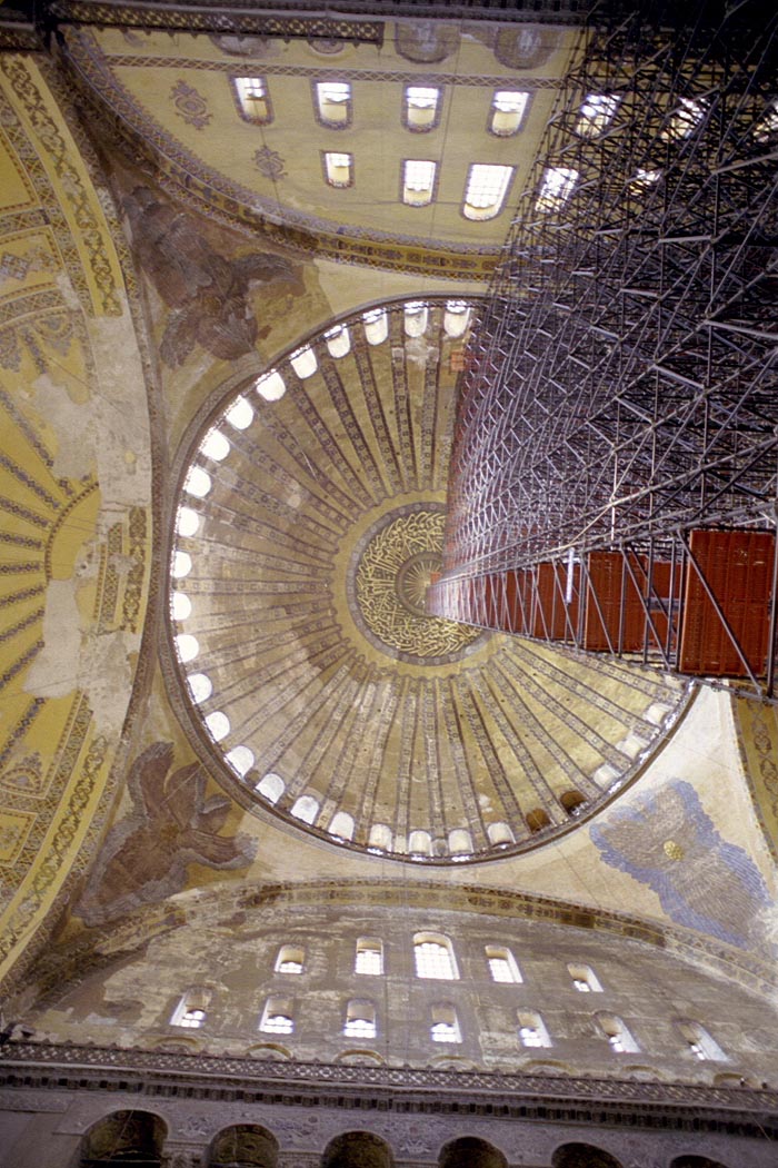 The whole place was under repair. No wonder considering it's age and use. Notice the row of windows under the dome. Even today this would be feat of engineering, but image figuring this out in the 6th century! |