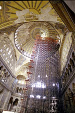 After converted to a Mosque the church mosaics were either destoyed, defaced or covered over. |