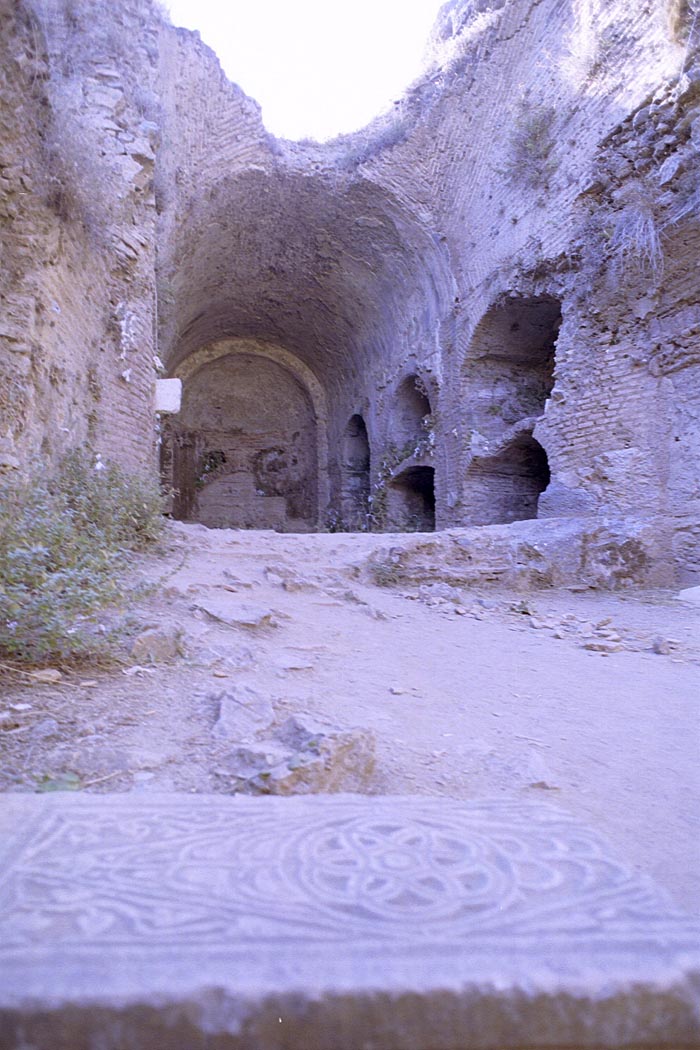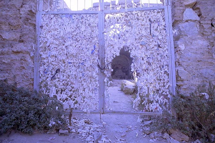 Ok, quick summary. Seven "yoots" living in Ephesus under the rein of a pagan ruler were asked to sacrifice at the temple of the royal family. Being "good" Christian kids they fled to the nearby hills and fell asleep in a cave. They awoke and sent one kid back into town to get some food. He quickly discovered that they had been asleep for 130 years and there was now a Christian on the throne. The cave where they slept became a shrine, they all became saints, a chirch was built in the cave and the seven boys, who all lived long lives, were buried in the church. These are the ruins. The white "chits" are apparently prayer chits. |