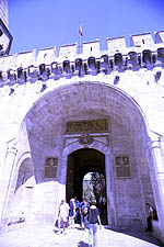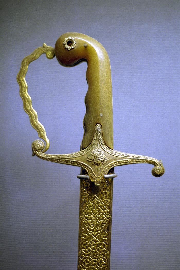 There is a small but very nice "Exhibition" of arms and armor on the north side of the second courtyard. Actually, the arms themselves are exquisit, the presentation sucks. Very dark and dirty considering the contents and the fragility of the armor. Notice the detail on the blade of this sword, once owned by one of the Sultans, can't remember which one. |